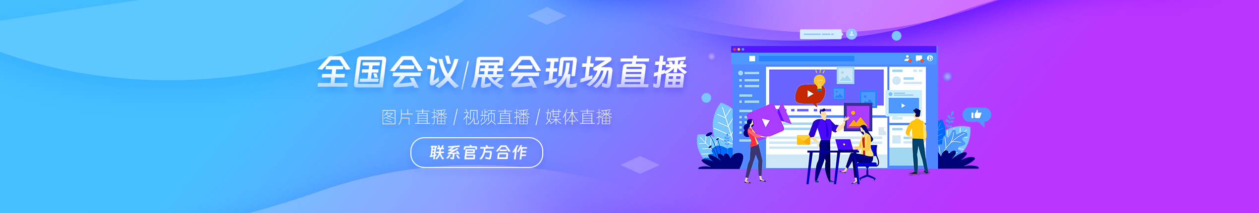 提供展會(huì)開(kāi)幕式、論壇、峰會(huì)及展會(huì)犖每遄縫嘴絹畫(huà)場(chǎng)的云攝影、攝像、現(xiàn)場(chǎng)直播、巡館跟拍等;