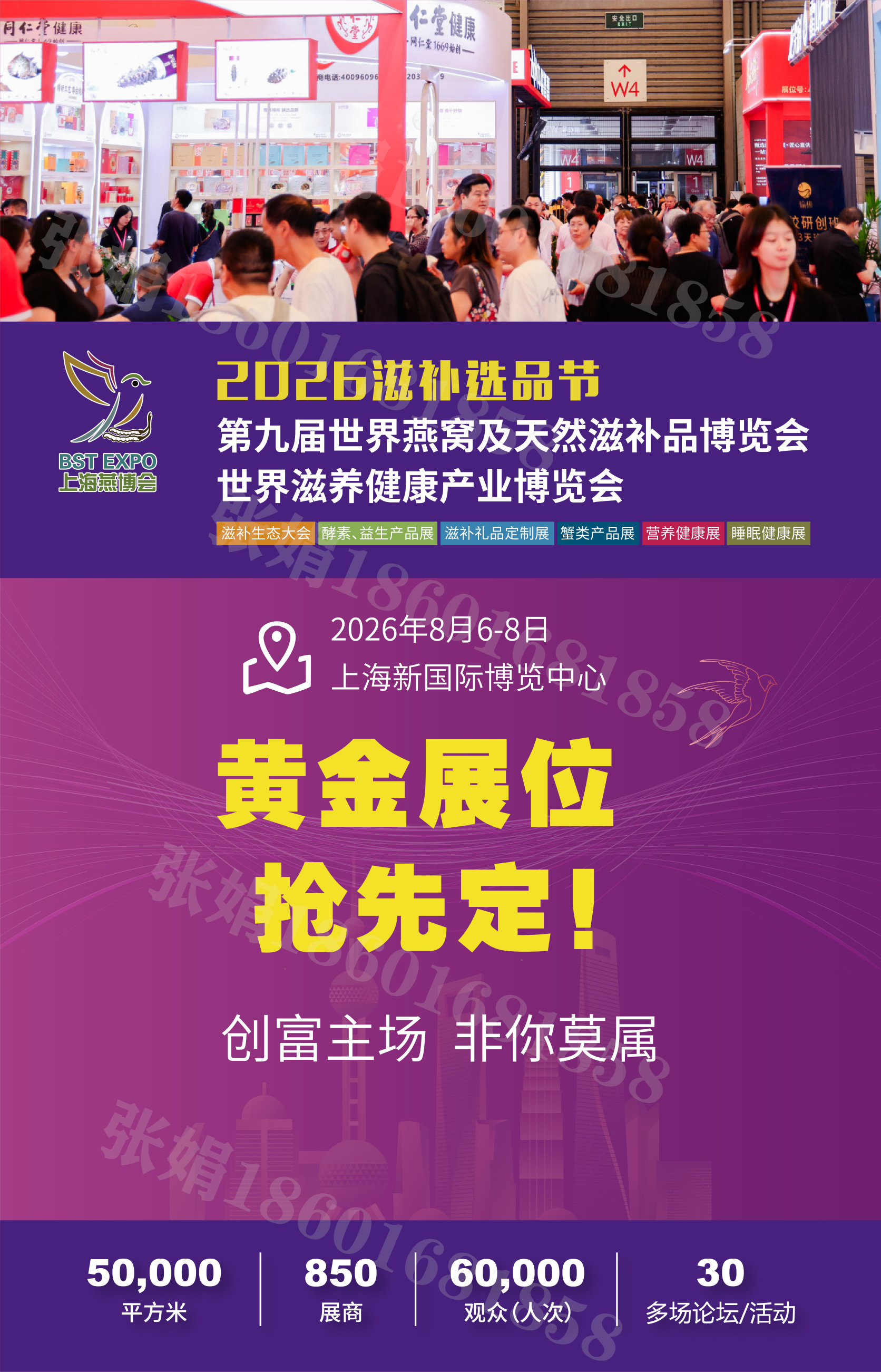 滋補(bǔ)選品節(jié)-上海燕博會(huì)暨世界滋養(yǎng)健康產(chǎn)業(yè)博覽會(huì)經(jīng)歷了多年的發(fā)展與資源積累,已成為燕窩與滋補(bǔ)產(chǎn)業(yè)領(lǐng)域具有知名度和權(quán)威性的行業(yè)盛會(huì),各地政府、行業(yè)協(xié)會(huì)、產(chǎn)業(yè)園區(qū)、保稅區(qū)、合作伙伴、行業(yè)精英深度探討燕窩 與滋補(bǔ)產(chǎn)業(yè)發(fā)展,并保持緊密的合作。上海燕博會(huì)作為業(yè)內(nèi)頂尖行業(yè)盛會(huì),期待各位攜手BST EXPO 2026繼續(xù)共同前行, 再創(chuàng)輝煌,給廣大客戶提供更優(yōu)質(zhì)、更專業(yè)、更全面的一站式解決方案。       同期舉辦“2026世界滋補(bǔ)產(chǎn)業(yè)生態(tài)大會(huì)、2026第十一屆酵博會(huì)、2026第八屆益生產(chǎn)品展、第十一屆月子健康展、滋補(bǔ)禮品定制展、營(yíng)養(yǎng)健康展、世界蟹類展、全球有機(jī)食品展”等多展同期召開(kāi),預(yù)計(jì)總規(guī)模近50,000平方米展示面積,同期舉辦近30多場(chǎng)活動(dòng)及論壇,匯集燕窩及滋補(bǔ)品行業(yè)上千家品牌匯聚專業(yè)買(mǎi)家60000多人次,圍繞“共創(chuàng)養(yǎng)生新時(shí)代,成就滋補(bǔ)大未來(lái)”;推動(dòng)健康行業(yè)有序發(fā)展,作為行業(yè)風(fēng)向標(biāo),緊隨市場(chǎng)發(fā)展,全面覆蓋產(chǎn)業(yè)鏈,為行業(yè)搭建了一個(gè)技術(shù)交流、咨詢、合作(展示、代理、招商、加盟、銷售)、擴(kuò)大上下游貿(mào)易、提高品牌和企業(yè)知名度一站式服務(wù)平臺(tái)。